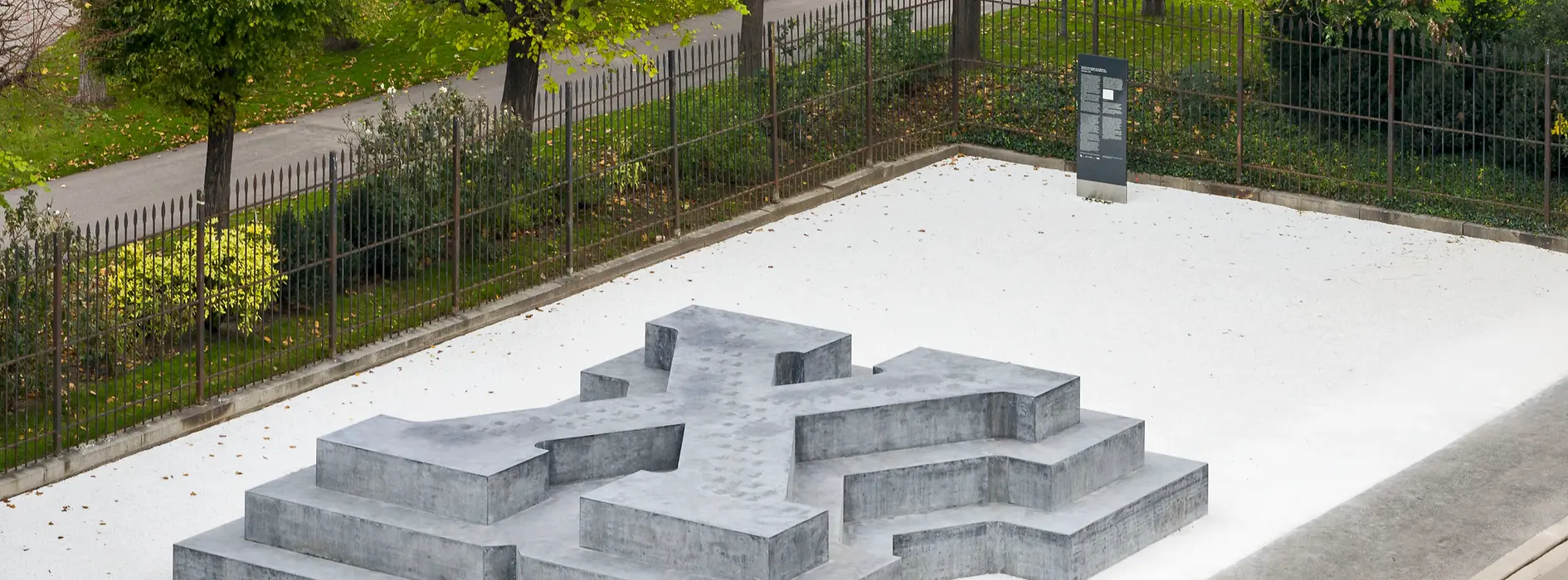 The sculpture shaped like an X is a memorial to the more than 30,000 deserters and so-called "subverters of national defense" who were sentenced to death by National Socialist military justice during the Second World War.