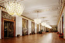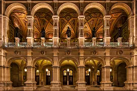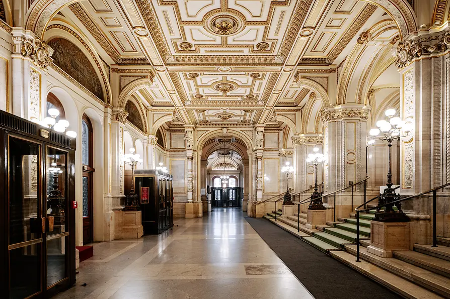 From the foyer, the tour ascends the Grand Staircase and then through the ceremonial rooms (Teesalon, Marmorsaal, Schwindfoyer, Gustav-Mahler-Saal) to the auditorium with a view of the stage. Images that the whole world knows: The stalls transform once a year into a ballroom for the Vienna Opera Ball. Normally, the Viennese audience listens in from the tiers of seating.