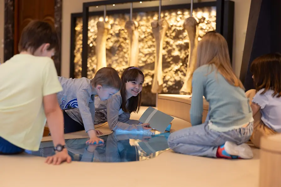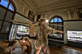 The human being and its development are in focus in the Anthropology Halls. In addition to skeletons and soft tissue reconstructions of early humans, visitors can also examine a virtual skeleton by means of a microscope, magnifying glass or X-ray machine for age, gender, illness and cause of death. At a morphing station, visitors transform into early humans and can send their "old countenance" to friends via email.