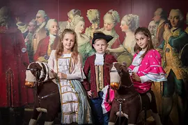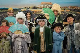 In twelve rooms in the west wing of the former Habsburg residence, they can marvel at walls painted with fantasy landscapes, learn to flirt in fan language, and learn about body care and the art of make-up at the Court. Baroque dresses and wigs are waiting to be tried on. The aristocratic upbringing is also a topic, as are the favorite games of the princes and princesses.