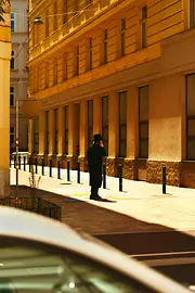 Guiding system for the visually impaired with special "leading stones" (grooves and knobs), which can be felt with canes or feet - for the passage between the individual artistic institutions on Karlsplatz (e.g. Künstlerhaus, Musikverein) and for crossing the Friedrichstrasse-Lothringerstrasse intersection (which has heavy traffic), the traffic lights have audible signals.