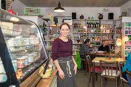 The VHS Kulturgarage offers a varied cultural program of national and international artists. The Ariana Event Location has even been awarded an international architecture prize. The HoHo Wien is the world’s second-tallest wooden high-rise building at 84 meters tall. The area’s culinary offerings are also outstanding, for instance Café Leo for breakfast or snacks, Café Bruno é Marone with its own roasting house, See22 for more substantial meals and cocktails and the ice cream parlor at Schwedenplatz. The popular ice cream company, which has its main branch on Schwedenplatz in the city centre, creates and sells its produce here. Owner Johannes Kößler will give you the best advice at his Seeseiten bookstore – that is, unless he is out delivering books to local residents himself on his bicycle. What’s more, this is far from the only sustainable initiative that can be found in Seestadt.