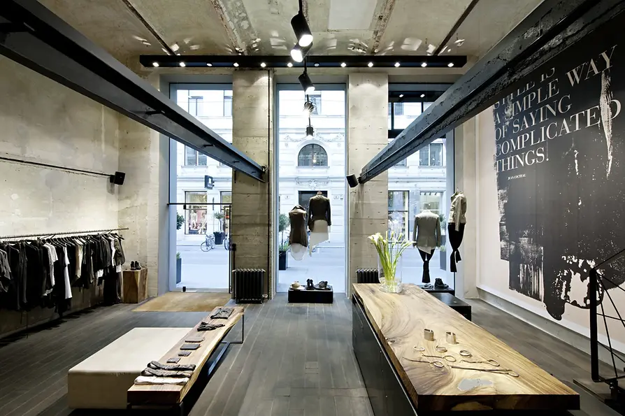 A cool shop with a minimalist ambience. Fashion by young international designers.