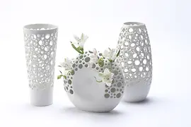 The manufactory of Mano Design is a little younger. Designer Hedwig Rotter produces tableware, vases, and lighting objects in her Viennese studio. She plays humorously with conventions in her designs, while her Vienna Collection also makes reference to the city with Giant Ferris Wheel motifs or the Vienna skyline. Porcelain can be worked with in many ways: Thus Mano Design also creates perforated bowls and vases in the "Dots" range. Another collection turns the familiar on its head, with the template for the manufacturing of vases becoming a product in its own right. A showroom and salesroom are also attached to Hedwig Rotter's studio in the 16th district.