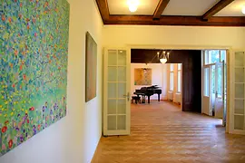 The 6,000 m² garden is an oasis of peace, the architecture of the house particularly exciting: because in the 1920s, the original studio was "overbuilt" with a picturesque villa. Klimt's studio is therefore retained on the inside.