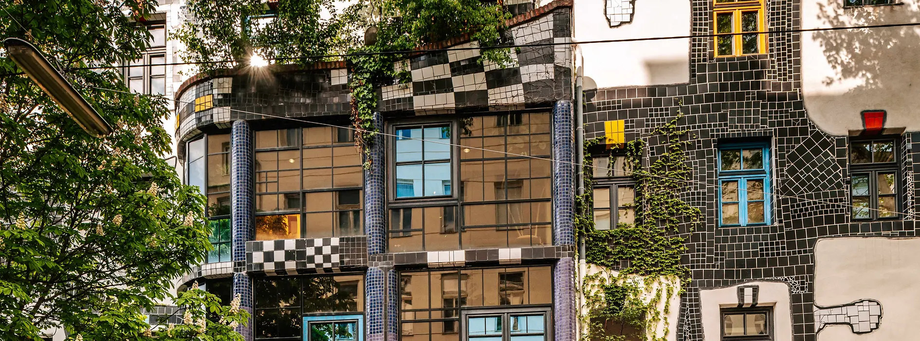 Vienna-born Friedensreich Hundertwasser (1928-2000), a prolific painter, architect and ecologist, completely rebuilt what was once the Bugholzmöbelfabrik Thonet (Thonet Furniture Factory) in the Weißgerberviertel between 1989 and 1991, giving the previously unremarkable building his characteristic style. There are irregular features made of glass, metal, brick, wood and ceramic tiles in a multitude of colors at every corner of the building. There are almost no straight lines or planes whatsoever.