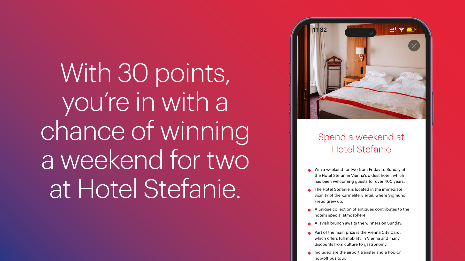 To qualify for the draw for the main prize (a luxury weekend in Vienna for two people at the Hotel Stefanie from Friday to Sunday), you need a maximum score of 30 points.