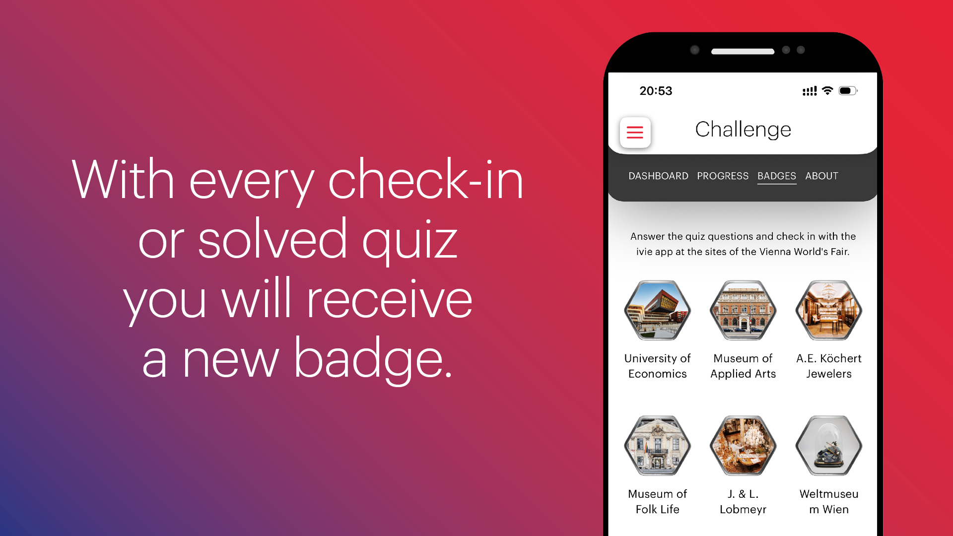You can achieve this by answering all the quiz questions (3 questions per location) correctly and checking in at all 6 of the Sigmund Freud locations in the ivie challenge – the digital check-in will work within a distance of 100 meters of the location.