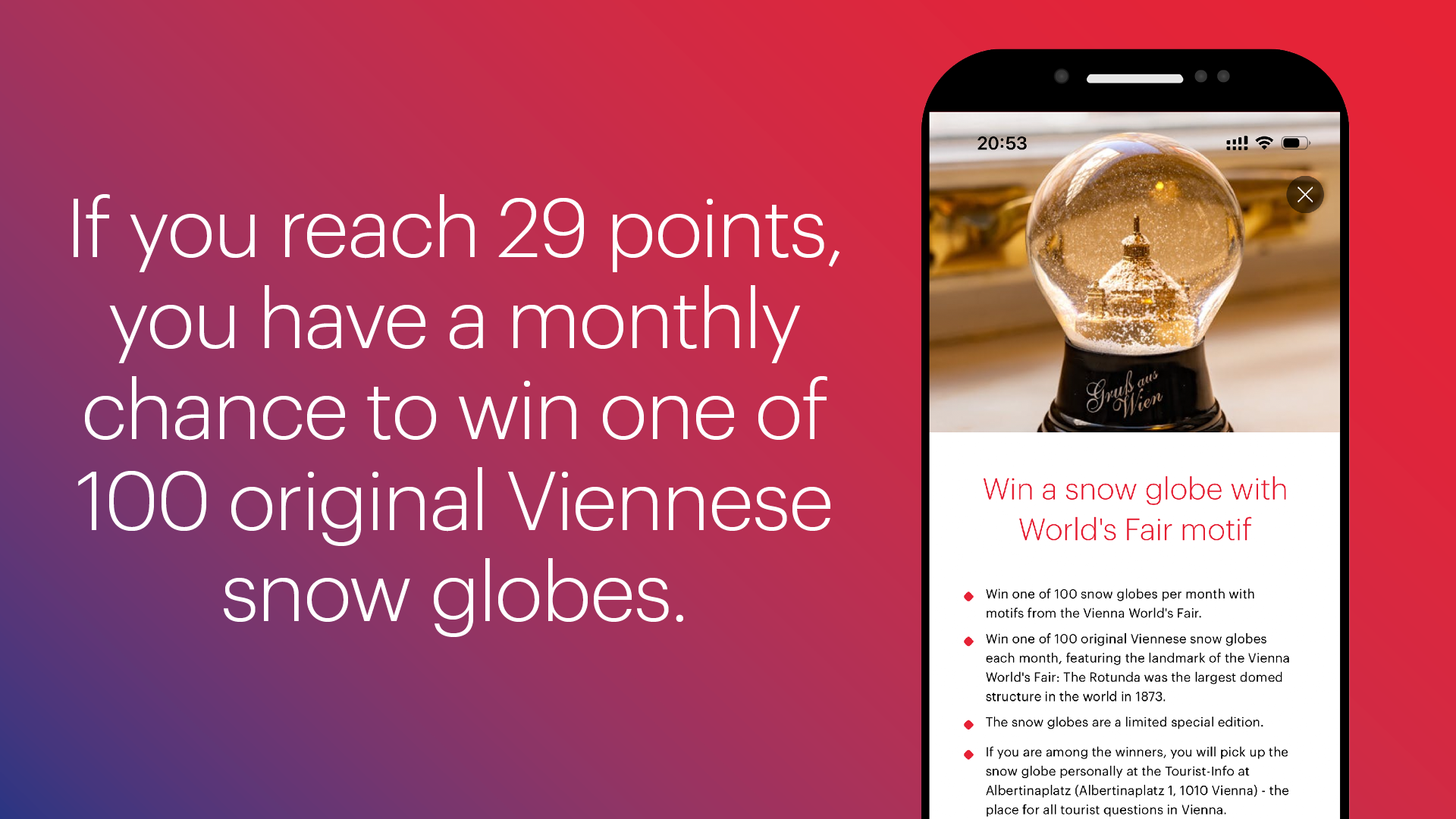 You can pick up your stationary set at the Tourist Information Albertinaplatz (Albertinaplatz 1, 1010 Vienna). The staff there will ask to see your points score in the ivie app.