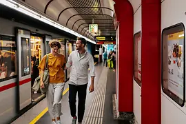 Incidentally, the Viennese subway network celebrated its 45th anniversary in 2023. In 1978, the first section of the U1 line opened between Reumannplatz and Karlsplatz. It’s worth mentioning that the term subway shouldn’t be taken too literally in Vienna: not a single line runs completely underground. In fact, just 50.3% of the network is below ground. Scheduled at very short intervals, Vienna's subway trains can also be used round the clock on Fridays and Saturdays, as well as the nights before public holidays. Unlike in other cities, there’s not a single ticket barrier anywhere in sight. But it goes without saying that riders need to show a valid ticket if there is an inspection!