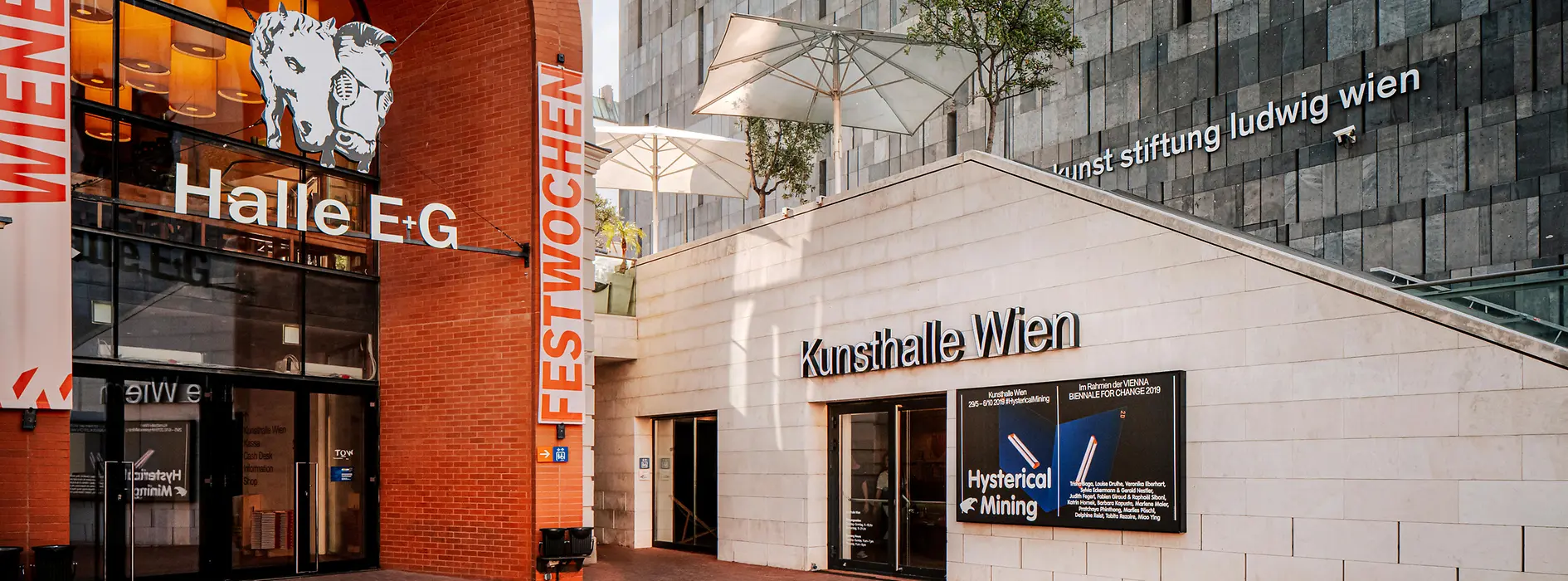 La Kunsthalle Wien no sólo merece la pena por sus exposiciones. Ambas ubicaciones combinan el arte moderno con arquitectura contemporánea. En 2001, el antiguo picadero de caballos de invierno barroco del MuseumsQuartier, a poca distancia del mumok – museo de arte moderno fundación ludwig viena, se complementó con un edificio nuevo y funcional diseñado por los arquitectos Ortner + Ortner. En la ubicación de Karlsplatz, un cubo de cristal obra de Adolf Krischanitz recibe a los visitantes. Su cafetería, con una gran terraza, invita a relajarse después de recorrer las exposiciones.