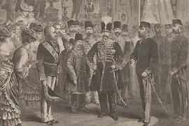 La Expo como evento social: el emperador Francisco José visitó la exposición 48 veces. Hicieron acto de presencia 33 príncipes reinantes, entre ellos el zar de Rusia, el emperador de Alemania, el rey de Italia y (el día 3 de agosto de 1873) el sah de Persia Nāsir al-Dīn, un evento que causó sensación. Para la ocasión, Johann Strauss (hijo) interpretó la Marcha Persa, lo que al compositor le valió que se le otorgara la Orden del Sol. Sin embargo, hay que mencionar que el Palacio de Laxenburg, en el que se alojaron el sah y su séquito formado por unas 60 personas, tuvo que ser restaurado después de su partida. | Wien Museum: Exposición Universal de 1873