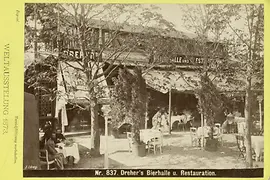 Gracias a la gran variedad de ofertas gastronómicas, los visitantes hambrientos podían realizar un viaje culinario alrededor del mundo (foto de la cervecería Dreher), pero los precios excesivos, las pequeñas raciones y la calidad de la comida causaron un gran revuelo. El actor de teatro János Szika se quejó con razón de que en el restaurante inglés le sirvieron un pollo “que ya no tenía la intención de ser degustado y había decidido empezar a descomponerse”. A lo que el actor “tiró la cosa al suelo”. | Wien Museum: Exposición Universal de 1873