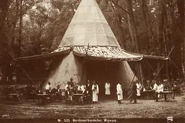 Un restaurante curioso era el “Wigwam”. La idea del empresario neoyorquino Boehm & Wiehl triunfó: el bar fue todo un éxito, sobre todo los cócteles. Estos apenas eran conocidos en Viena (Sherry Cobbler, Mint Julep, Catawba Cobbler…) y se aspiraban mediante una pajita, algo también completamente nuevo en la época. En el Wigwam, la archiduquesa María Valeria (que entonces tenía cinco años) quiso que le cantaran y danzaran la canción “Yankee Doodle”. | Wien Museum: Exposición Universal de 1873