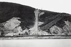 A principios de julio de 1873, la Sociedad Austríaca de Ferrocarriles de Montaña inauguró un funicular hasta la colina del Leopoldsberg, en la periferia de la ciudad, que también estaba expuesto en el recinto. Los dos vagones podían transportar 100 personas cada uno cada diez minutos salvando una altura de 242 metros. El trayecto duraba unos cinco minutos. | Wien Museum: Exposición Universal de 1873