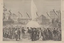 El 24 de octubre de 1873 se inauguró la primera conducción de agua de manantial de Viena, que hasta el presente suministra a la ciudad de Viena agua fresca de montaña procedente de los Alpes tras haber recorrido un trayecto de 95 kilómetros. Su símbolo visible desde lejos es la fuente situada en la Schwarzenbergplatz, que fue inaugurada solemnemente por el emperador Francisco José. | Wien Museum: Exposición Universal de 1873