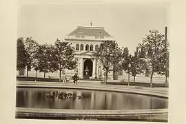 El recinto de la exposición incluía un pabellón artístico de 7.000 m² con paredes repletas de objetos, dos pabellones más pequeños (que son los únicos edificios que se conservan de la exposición) y otro edificio artístico (el llamado Kunsthof). Se mostraron 6.600 obras de arte creadas posteriormente a 1862 (el año de la Exposición de Londres). El mayor número de obras procedía de Francia. | Wien Museum: Exposición Universal de 1873