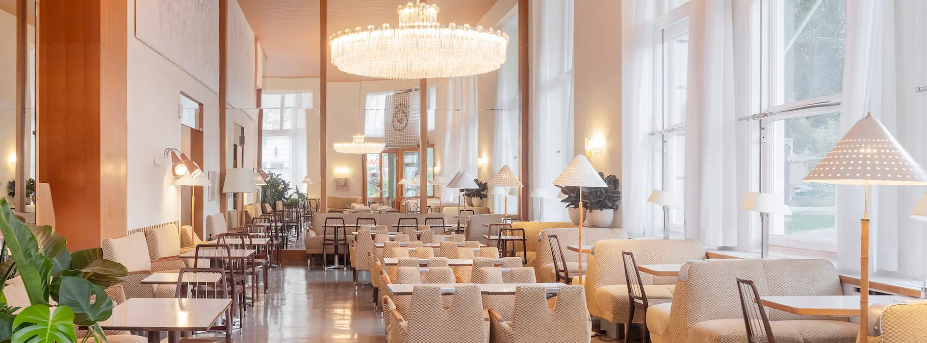 Este café de la Ringstraße no solo entusiasma a los amantes de los cafés, sino también a los aficionados a la arquitectura. Su interior de los años 50 es obra de la genialidad del arquitecto Oswald Haerdtl, que además era un cliente habitual del Prückel. Y tal y como Haerdtl reformó el café es como se conserva en la actualidad. Todos los detalles encajan, desde la lámpara hasta los paragüeros. A los vieneses les encanta.