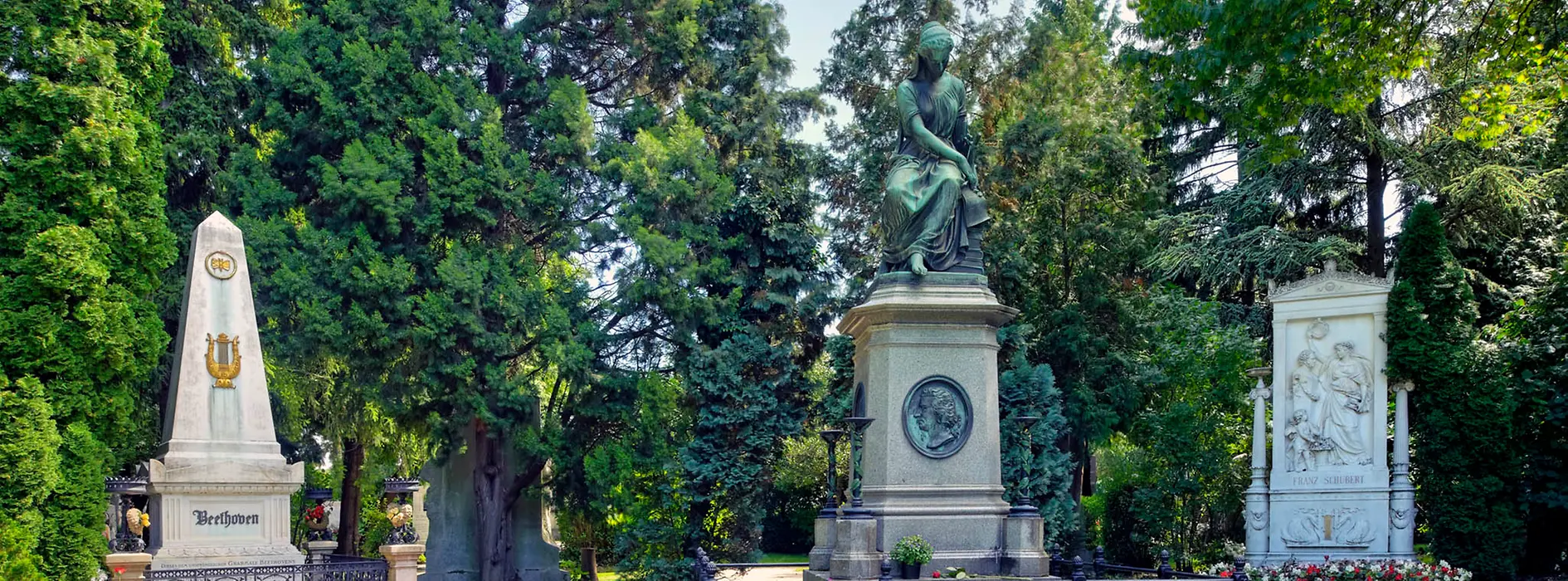 A lo largo de más de dos kilómetros cuadrados, el gran Cementerio Central contiene la que es probablemente la mayor concentración de monumentos conmemorativos para honrar a los muertos. Entre estos se encuentran Ludwig van Beethoven, Franz Schubert, Johann Strauss y Johannes Brahms.