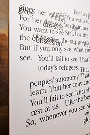 Pero en esta campaña no se trata solo de Sisí. El llamativo aspecto visual del poema ayuda a cuestionar la percepción fundamental de las mujeres. Algunas palabras, como por ejemplo “beauty” o “dresses” han sido repetidas tantas veces que atraen la atención del observador y quitan relevancia a los datos después mencionados. Una presentación visual que pone de manifiesto el hecho de que la imagen de la mujer ensombrece con frecuencia su trabajo y sus capacidades.