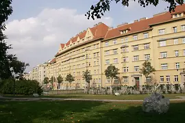 Karl-Seitz-Hof (1931) En la construcción de 25 320 metros cuadrados, antiguamente hubo tiendas, baños, lavaderos, un bar, un café y otras instalaciones comunitarias. Desde 1918 hasta 1920, Karl Seitz fue presidente y, desde 1923 hasta 1934, alcalde de Viena. Durante su cargo, el concepto de los edificios sociales se convirtió en una realidad y el sistema escolar y sanitario fue sometido a reformas.