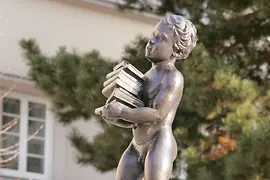 Karl Marx Hof (1930) En el patio Ehrenhof se yergue una figura en bronce de Otto Hofner, un 'Sämann' (sembrador). Las cuatro delicadas figuras hechas por el artista Josef Riedl marcan adornan el tramo central de la construcción, y simbolizan 'libertad', 'cuidados', 'información' y 'cultura física'. Durante la guerra civil de 1934 se produjeron encarnizadas luchas en la zona. Una placa recuerda la fecha del 15 de febrero de 1934, día en el que cayó el Karl-Marx-Hof.