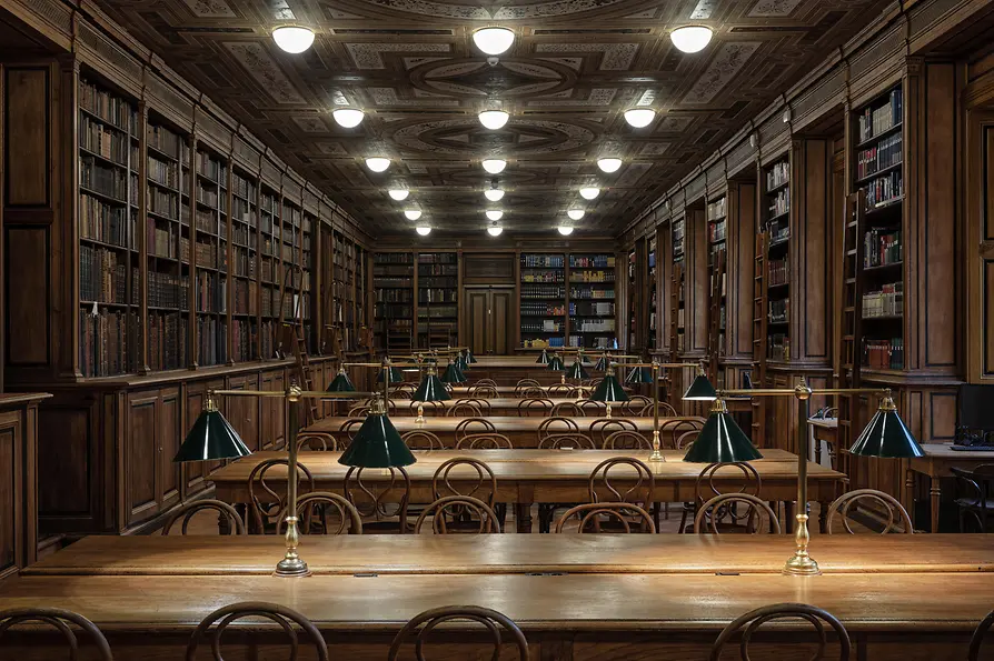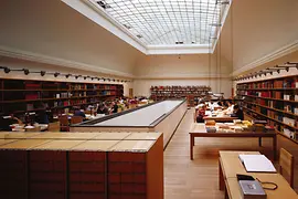 En una buena biblioteca, todo tiene que estar bien ordenado y clasificado; la Sala de Lectura del MAK – Museo de Artes Aplicadas no es ninguna excepción. La polifacética colección está formada por más de 200 000 libros, publicaciones artísticas y revistas está distribuida de forma prácticamente simétrica, así como las mesas, las estanterías y las lámparas. Es por eso que esta biblioteca atrae especialmente a amantes del diseño y goza de gran popularidad entre estudiantes de arte. El ambiente sobrio de la Sala de Lectura de Ursula Aichwalder y Hermann Strobl ofrece las condiciones perfectas para la investigación y el trabajo desde 1993. Esta biblioteca vienesa abre sus puertas incluso los domingos.