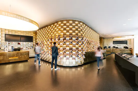 All public areas incl. gastronomy on the 3rd floor are accessible by ramps, elevators and stair elevators.