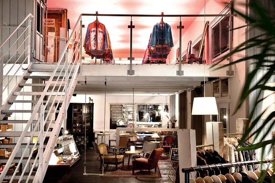 Magnífica tienda vintage con una extensa oferta de moderno vestuario de segunda mano. También sirve café y tarta.
