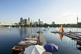 Un peu plus loin, sur le Vieux Danube, des établissements comme le Bootsverleih Hofbauer proposent la location de pédalos, barques et voiliers. Le Wiener NationalparkBoot propose une possibilité de découvrir les particularités des paysages naturels. Il circule du canal du Danube au parc national Donau-Auen. C'est là que s'ouvre aux personnes intéressées l'écosystème sensible Wasserwald ainsi que le caractère unique de Lobau en tant qu'espace vital de nombreuses espèces animales et végétales. Des espaces verts totalement insoupçonnables dans une grande ville.