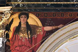 Le Musée du Théâtre au Palais Lobkowitz est l’un des plus grands et plus remarquables de son genre. Il accueille également une invitée très spéciale : la Nuda Veritas de Klimt, huile sur toile datant de 1899. Cette œuvre représente Marie Zimmermann nue tendant un miroir aux visiteurs, telle la « Vérité nue » : un nu grandeur nature correspondant aux idéaux contemporains.