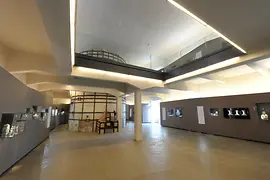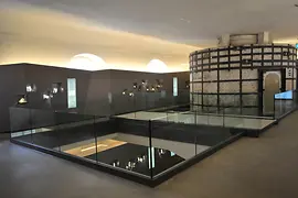 Un poêle original s'étend sur les deux surfaces d'exposition. Une boutique et un restaurant viennent compléter l’offre du bâtiment fraîchement rénové.