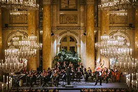 L'orchestre ou l'ensemble du château de Schönbrunn, accompagné par une soprano et un baryton, interprète des œuvres de Mozart et de Strauss à l'Orangerie du château, la plus grande au monde. C'est là qu'a eu lieu le fameux duel musical entre Mozart et Salieri en 1786 ! Forfaits visite du château/concert disponibles. Vienna City Card - L'orchestre de la Hofburg de Vienne