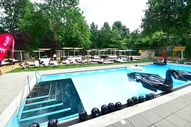 Le Pratersauna continue d'irradier un charme venu tout droit des années 1960. Le club révèle tout son potentiel en été. Aucun autre club de la ville ne possède une si belle piscine dans un écrin de sable et de verdure. En saison estivale, le Sauna Strand Klub est ouvert aux baigneurs jusqu'à 20 h. La nuit, le bassin reste illuminé et constitue un décor idéal pour faire la fête.