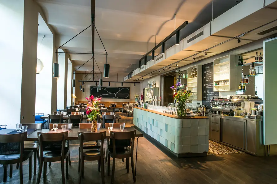 Un café moderne qui, avec son joli sol carrelé, a un petit côté bistrot. La carte du petit-déjeuner est un voyage à travers le monde, comme il se doit pour un « bureau des télégraphes ».