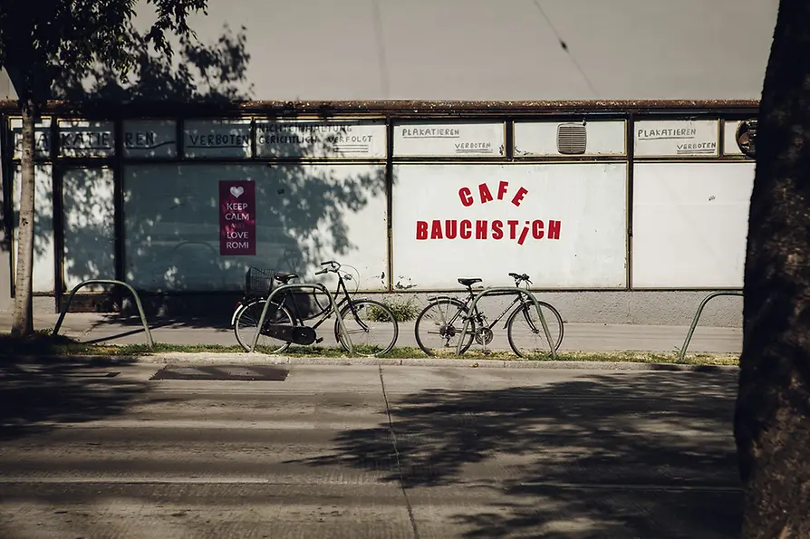 Café Baustich, littéralement : « café coup de couteau dans le ventre » – c’est ainsi que les Viennois appellent un lieu glauque où l’on risque d’être pris dans une bagarre. Un lieu évidemment imaginaire, mais longtemps, ce nom, inscrit sur une façade vide par un quelconque blageur, est resté bien visible.