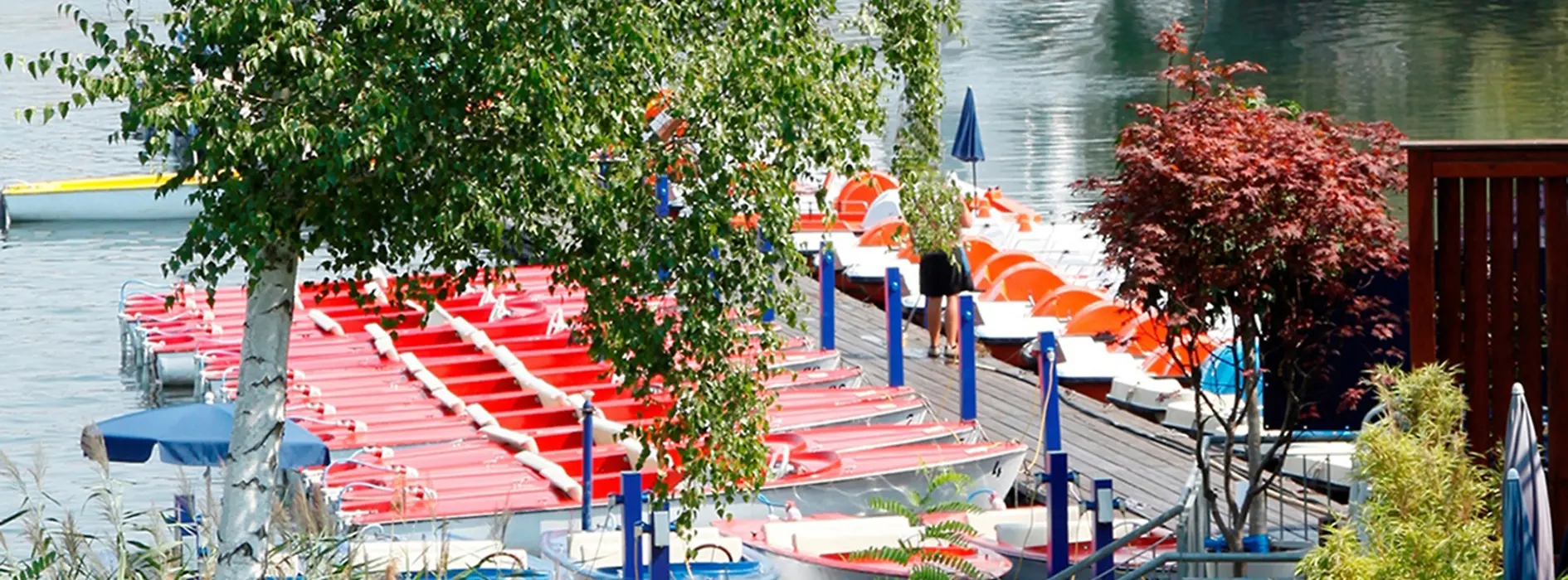 The boat rental outlet has pedal boats, rowing boats and electric boats available to experience hot summer days out on the water.