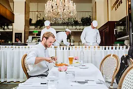 De a város közepén is úszhyatunk a szabadban. AHotel Grand Ferdinand közvetlenül a bécsi Ringstraße mentén helyezkedik el. A szálloda tetején egy kültéri medence található, innen lubickolva szemlélhetjük a Ringstraße történelmi építészetét. Ez egyedülálló Bécsben. De eme kilátás kedvéért nem kötelező a medencébe ugranunk. A szálloda vendégei a díszemeleten exkluzív koktélok és étkek mellett is elpillanthatnak Bécs tetői fölött. A díszemelet különben nem csak a szálloda vendégei számára elérhető. Aki a Private Dining Club tagja, az ugyancsak igénybe veheti a tetőtér luxusát. A szálloda földszintjén a Meissl & Schadn étteremben a klasszikus bécsi konyhát kínálja vendégeinek.