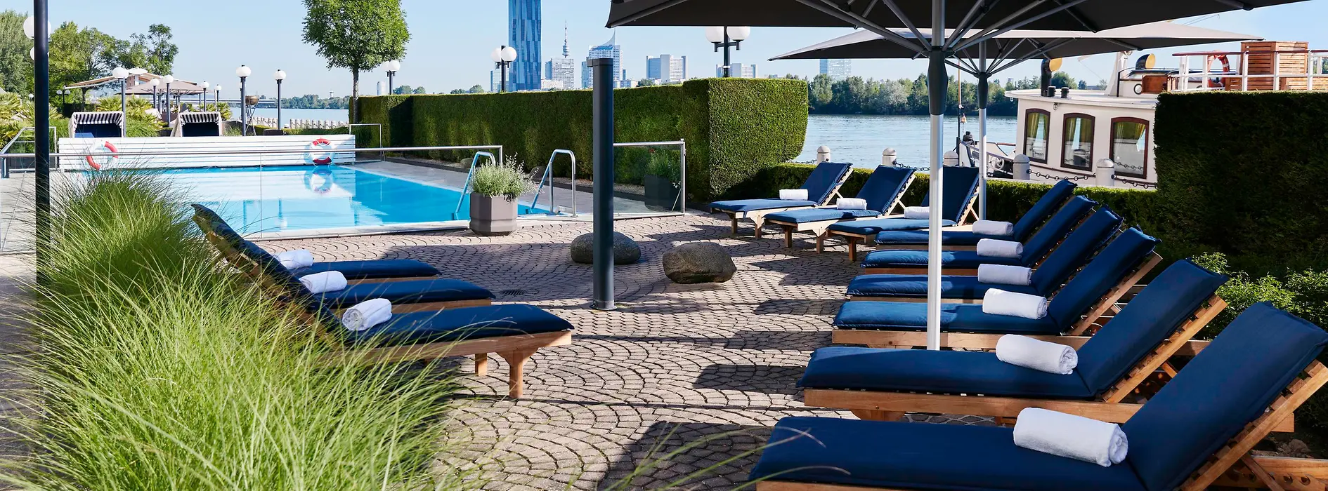 És igen, Bécsben még magánstranddal rendelkező szállodák is vannak az Öreg Dunán. Az Alte Donau strand hotel üdítő fürdőel vár a városi séta után. A szálloda saját fürdőstrandján kiválóan lazíthatunk. Közvetlenül a szállodából felfedező túrákra is indulhatunk, csónakkal, vagy kerékpáron. A heverők, napernyők, evezős csónakok, kerékpárok, kerékpáros térképek ingyen állnak rendelkezésre.