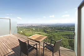 Az egyik legszebb kilátás a városra a Kahlenbergi szálloda lakosztályában nyílik.. Itt a vendéget szőlőhegyek és erdők veszik körül, hogy feltelhessen energiával. A városszéli Heuriger kiskocsmák nincsenek messze, és a városközpontba is beérünk egy félórán belül a tömegközlekedési eszközökkel. 20 Loft lakosztály várja itt a látogatót, a teraszáról pedig széles tájat felölelő, lenyűgöző kilátás nyílik Bécsre. A reggelit a szomszédos Café Kahlenbergben fogyaszthatjuk el.. Csak egy kőhajításnyira találhatók a közkedvelt Nussberg termelői borkimérések, ez Bécs egyik legszebb borvidéke