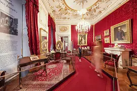Notification by telephone approx. 15 minutes before arrival at the front desk suggested (Tel. +43 1 52 524-7010), automatic gate and stairlift, operation with "Euro Key", then 5 steps to the ticket counter. Elevator available at ticket counter level (door width: 65 cm, cabin depth: 120 cm, cabin width: 140 cm). The collection of ancient instruments and the collections of arms and armor are only accessible via this elevator, the Ephesos Museum can only be reached from this level via steps (total 60 steps).