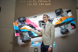 Sono esposti anche i veicoli ad alta velocità della casa asburgica. L’oggetto più recente in mostra è l’auto da corsa nella sua rappresentazione artistica (Formula Renault 1.6) di Ferdinando d’Asburgo. Il figlio di Carlo e Francesca d’Asburgo è pilota e nuova speranza della Formula 1. La sua "Art Car" viene raffrontata con due veicoli storici: l’auto sportiva costruita nel 1814 per l’Imperatore Francesco I, che raggiungeva la velocità di 16 km/h con l’ausilio di due cavalli; e l’"auto imperiale" da 45 CV di Carlo I, una vettura a benzina con 5 marce e una velocità massima di 90 km/h. L’"Art Car" del pronipote Ferdinando d’Asburgo ha 140 CV sotto il cofano e arriva fino a 230 km/h.