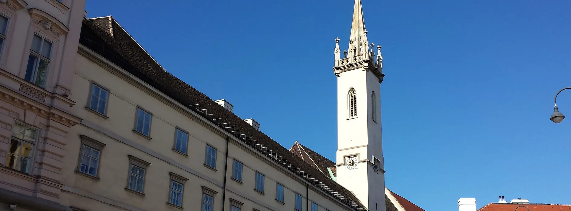 La chiesa, costruita fra il 1330 e il 1339, fu usata dalla casa imperiale come punto di partenza di pellegrinaggi e processioni in occasioni di giubilei nonché per cerimonie funebri. Particolarmente interessante è il monumento sepolcrale dedicato all’arciduchessa Maria Cristina, realizzato da Antonio Canova, un capolavoro d’arte classicistica in marmo bianco di Carrara (1798 - 1805) che rispecchia il grande cordoglio del vedovo.