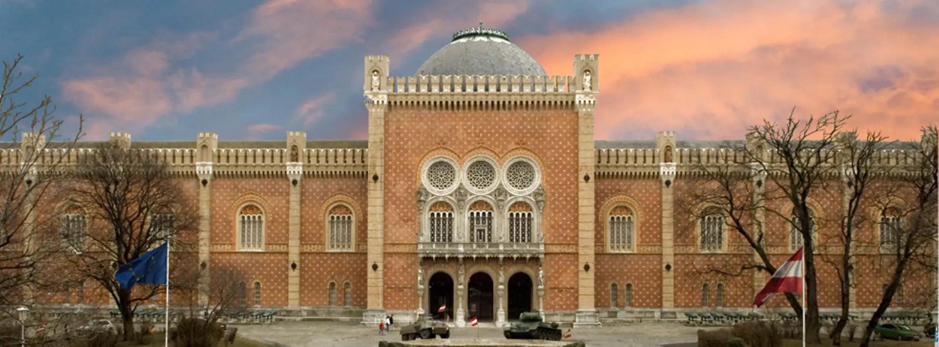 Non solo la storia militare e bellica, anche la tecnologia e le scienze naturali, l’arte e l’architettura trovano spazio nel Museo della Storia militare all’interno di una narrazione complessiva. L’edificio è già di per sé notevole: costruito tra il 1850 e il 1856 su progetto degli architetti Ludwig Förster e Theophil Hansen, il museo costituisce il nucleo centrale del complesso militare dell’Arsenale. È quindi l’edificio museale più antico della città. Qui gli architetti anticiparono lo stile che in seguito connotò la Ringstrasse con una prevalenza di tendenze moresche-bizantine e neogotiche.