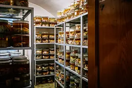 Show collection and study collection wheelchair-accessible, Exhibition collection and study collection accessible barrier-free, special guided tours for people with disabilities and special needs on request, Questions or appointment requests: +43 1 52177-606 or pas@nhm.at