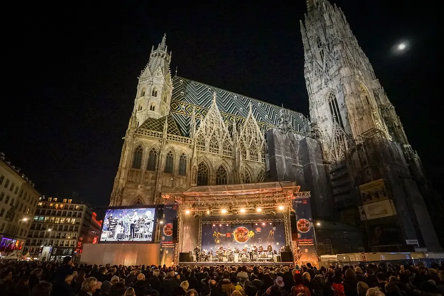 A chiunque abbia sentito parlare di Vienna è nota la magnifica vista del duomo di Santo Stefano. Solo pochi, tuttavia, conoscono il suono della sua campana più grande, perché la Pummerin rintocca soltanto in occasioni speciali. Una di queste coincide con il Capodanno: a mezzanotte in punto, la campana del duomo di Santo Stefano suona esattamente dodici volte, annunciando l’arrivo del nuovo anno. I rintocchi della campana possono essere ascoltati quasi ovunque a Vienna, ma ciò è principalmente dovuto al fatto che numerose stazioni radiofoniche e televisive trasmettono il suono della campana dal vivo prima di cedere il passo, come da tradizione, al Bel Danubio Blu. È finalmente giunta l’ora di muovere le gambe al ritmo di tre quarti: a casa, nella Stephansplatz o alla festa di Capodanno.