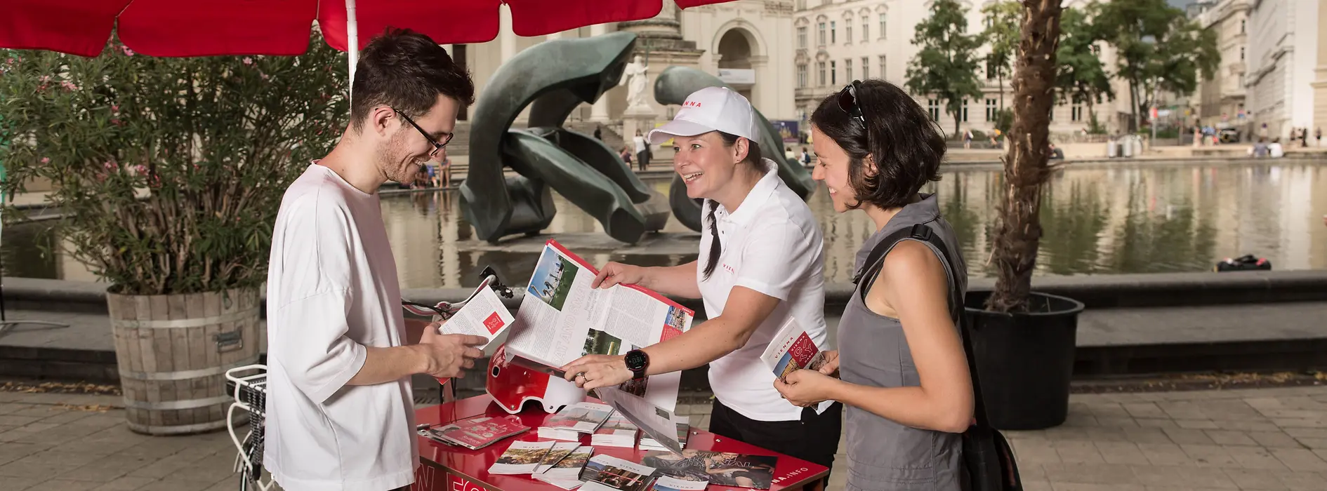 Durante i mesi estivi, la Mobile Tourist Info (MoTI) è in giro per la città e fornisce informazioni alle e agli ospiti in diversi punti della città. Le sedi MoTI possono essere richiamate anche su ivie, la City Guide app di Vienna, quando i MoTI sono in giro. ivie è scaricabile gratuitamente per iOS e Android.