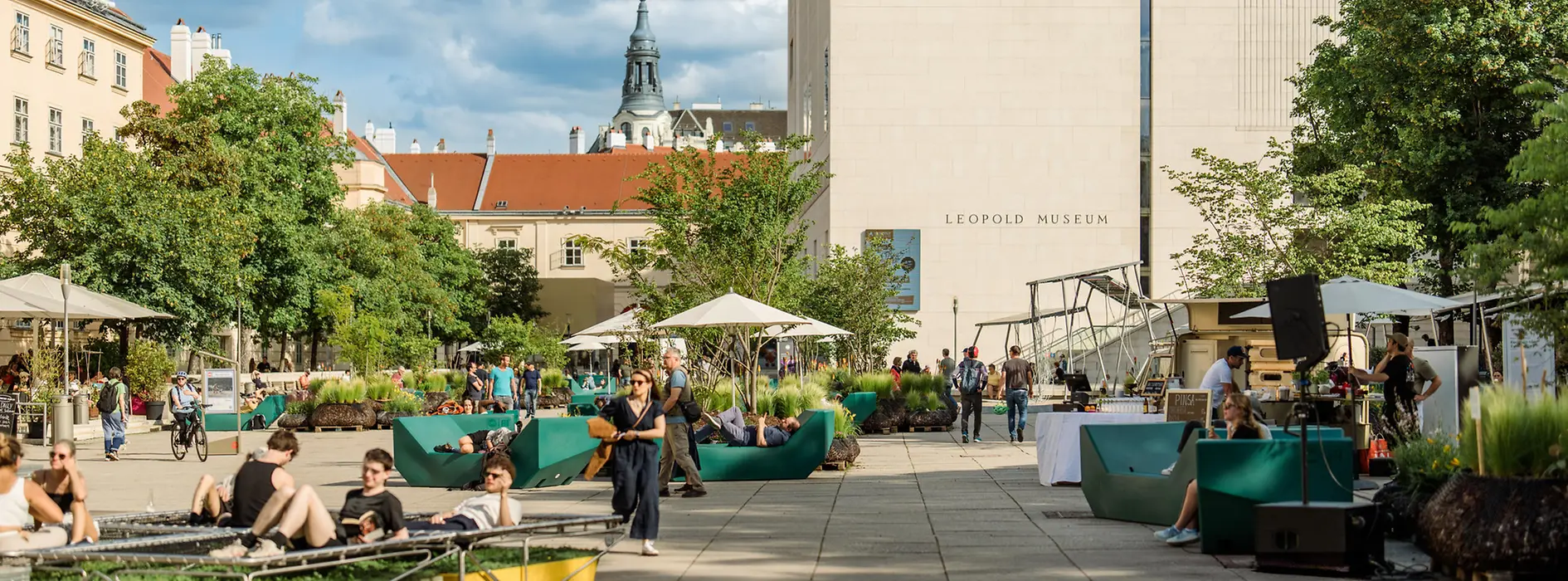 Wiedeńska Dzielnica Muzeów MuseumsQuartier (MQ) należy do największych kompleksów kulturalnych świata. Rozmaitość muzeów, inicjatyw kulturalnych i modnych lokali przyczyniła się do sukcesu dzielnicy MQ. Po wizycie w muzeum można usiąść wygodnie w jednym z przytulnych ogródków piwnych lub na stylowych meblach MQ na dziedzińcu MuseumsQuartier, zagrać w bule lub spróbować wegańskich lodów Veganista.