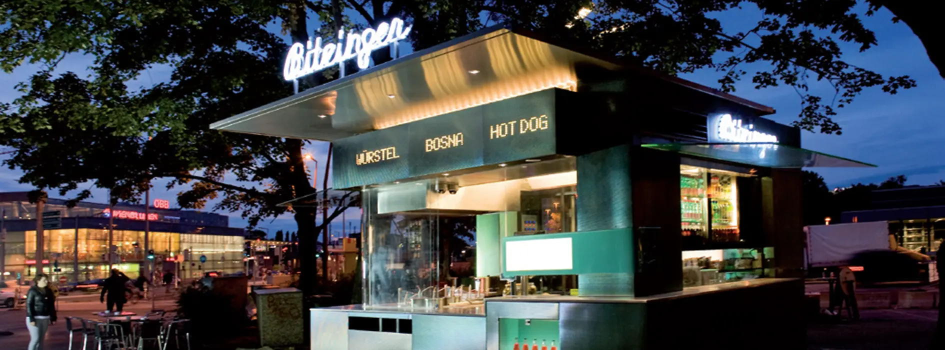 The Bitzinger family have run their traditional sausage stands for many years. Today they serve classic sausage varieties including Bratwurst and Burenwurst, Käsekrainer, Sacherwürstl, and Waldviertler, as well as hot dogs, Bosna, and spicy Teufelsgriller.