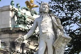 Impresionant este şi monumentul lui Mozart din marmură, care datează din anul 1896, iar azi se poate găsi în Burggarten, unde este încadrat de un aranjament floral în forma cheii sol.